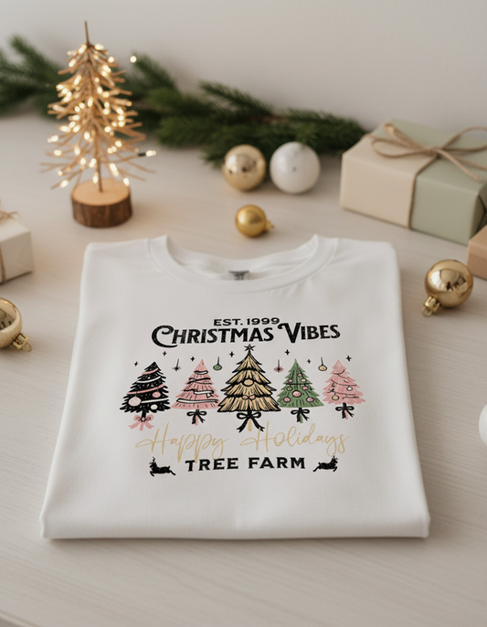 Christmas Vibes Tree Farm, Vintage Christmas Shirt, Retro Holiday Tee, Xmas Tree Graphic, Festive Winter Top, Holiday Gift Shirt
